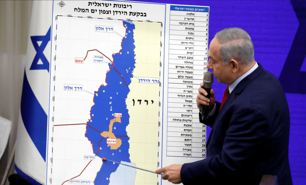 The speech before the 2019 elections promised “Peace and Security” as if citing Revelations 19:20, at time when the contents of the Trump Plan were not yet fully known, and the power of suggesting a major remapping of the relation of Israel to the West Bank might be persuasively made. The map, whose logic seems to underlie the claims of the map of the “New Middle East” Netanyahu would use before the General Assembly, on September 23, 2023, just weeks before the October 7 invasion. Indeed, the image of an annexed West Bank suggests a negative image of the invasion of Gaza, or make Jericho, as Youse Munayyer, the Director of the U.S. Campaign for Palestinian Rights put it quite succinctly, leave Palestinian residents of Jericho dependent on Israeli authority to enter and exit what would be a “new Gaza, another open-air prison Israel can lock down as it pleases.” The desired transformation of almost a quarter of the West Bank by the wave of a magic wand into an area of Israeli control area would disenfranchise Palestinian residents who would lack all voting rights or citizenship, but live in a system of limited autonomy might be better called apartheid, controlled by a minority of Israeli Jews.