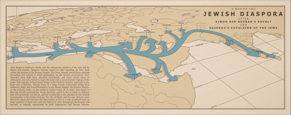 Imagined Trauma of c. 130 AD Jewish Diaspora from Severus’ Expulsion of the Jews from the Roman Empire/ Radioactive_Bee/r/imaginarymaps