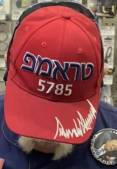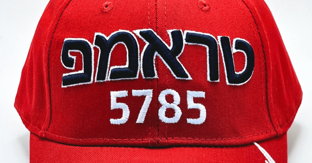 The year 5785 that began at sunset on October 2, 2024 places Trump’s Presidential campaign in a calendar not of the secular world but from creation, by God’s calendar, beyond any political cycle or national calendar. The year end of times destruction may be the conclusion, revealed in the Hebrew letters of Trump’s name on a cap fit for a coming apocalypse, more than any election, seemingly signed by the signature of the very same executive proclamation that recognized Jerusalem as Israel’s national capitol, and cemented Trump’s symbolic ties to a Holy Land. The headgear that was in fact widely available online was no doubt not made in America, but was an ideology whose eschatological implications sent my head spinning as I was preparing to canvass voters who might be eager to support a ticket that was ready to promise it was zealous to acclerate Armageddon, and eager to promote a sense that the proverbial prophetic writing was indeed already on the wall.