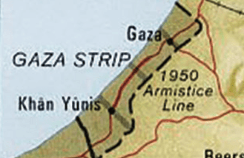 1950 Armistice Line and 1955 situation of Gaza, Mapped within Palestine Grid