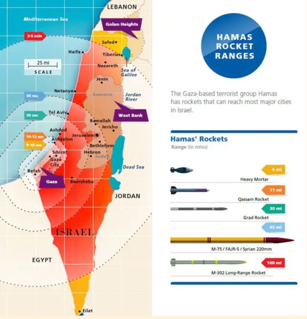 Rocket Ranges of Hamas from Gaza Strip, 2022/Jewish Virtual Library