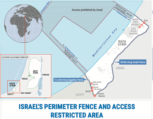 The “Green” Line has been an internationally recognized boundary of the Gaza Strip, defended by the Israeli Defenses Forces as such, never intended to be designed or rendered as a border of sovereignty, but has been construed as a political or territorial boundary in local and global geopolitics. If drawn independently from claims to rights of Palestinians, a question kicked down the road to an unspecified date for future resolution by the global consensus, increased fortification defense of a militarized barrier that maps the Green Line as an actual border–