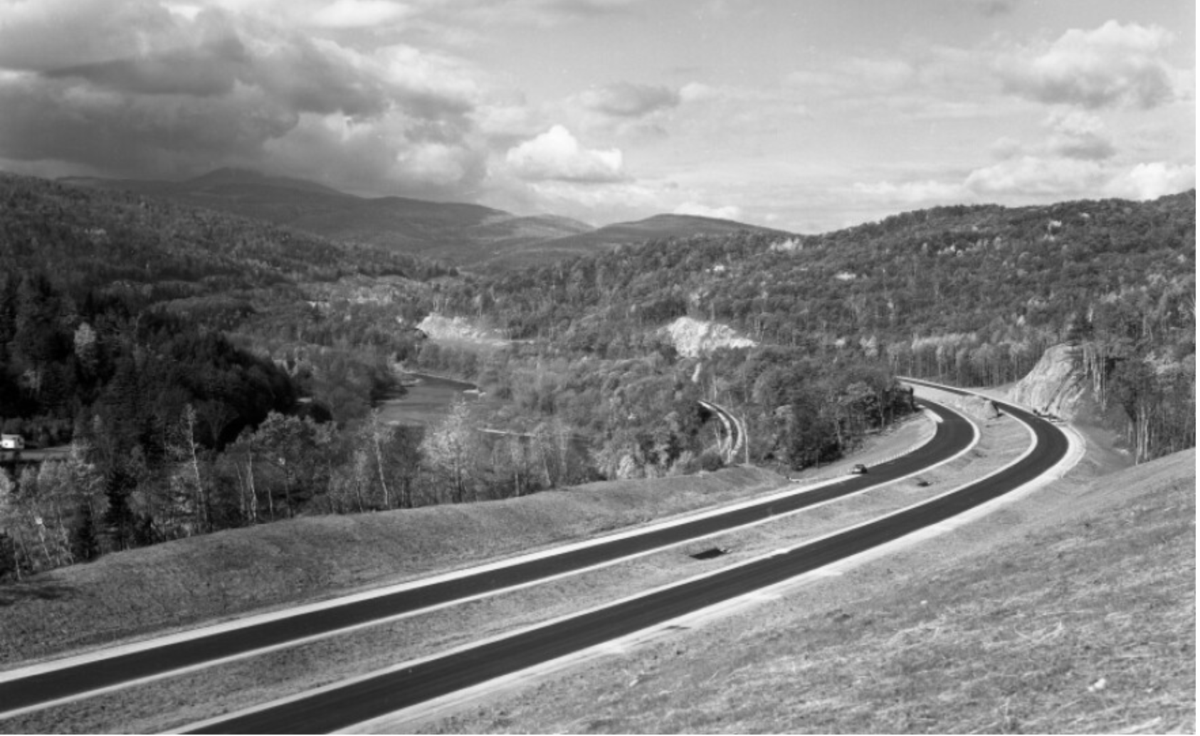 Newly Paved Interstate Curves through the Waterbury/Middlesex region, circa 1960/Vermont Historical Society
