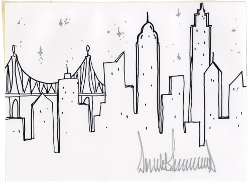 Is this early image not at the heart of his deep ties to the defense of Columbus Day as a national holiday and collective celebration, in the face of reality and claims to the contrary? It is as if predating any sense of global politics, he naturalized the heightened socioeconomic divides of the impressive city. Indeed, the opening up of the landscape would long fascinated him as a developer that he set his sights on conquering this new land of wealth. Those looming towers would be a beacon of sorts for the real estate company he inherited, and provide a soundstage on which his public persona as a realtor could be orchestrated as if existed apart from his father or the rest of his family, and indeed a migration story of sorts from the outer boroughs across the bridge that spans from Brooklyn and Queens to the glittering tower of Manhattan that he traced compulsively on paper napkins as new maps to his identity and brand, even before he took to affixing his name indelibly with their glittering facades.