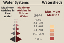 The spread of Atrazine in streams and waters that has been mapped on the basis of its agricultural use–if hypothetical and based on modeling–indicates the range of its potential spread into the regional groundwater of much of America.