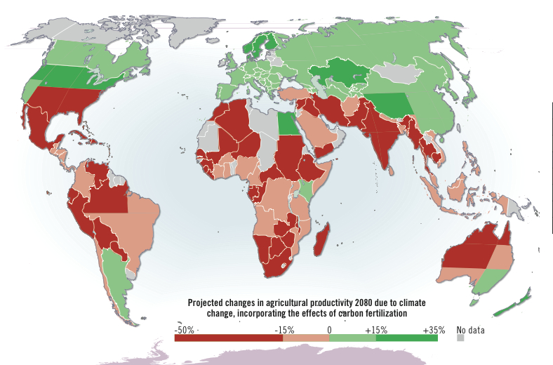 fertilization for plants,” while American productivity of crops is predicted to drop some 15%-50% on account of the impact of climate change.