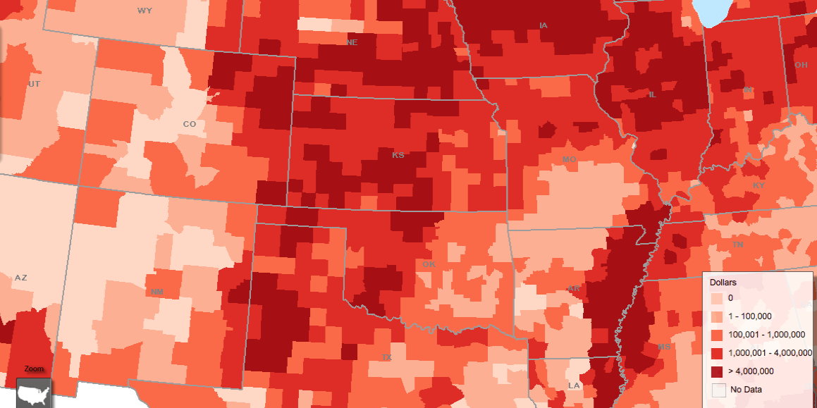 The different image that this provides of dollars spent in the Southland, however, is effectively a distorting mirror of the continued monies that flow to the acreage in the corn belt and across the midwest.)