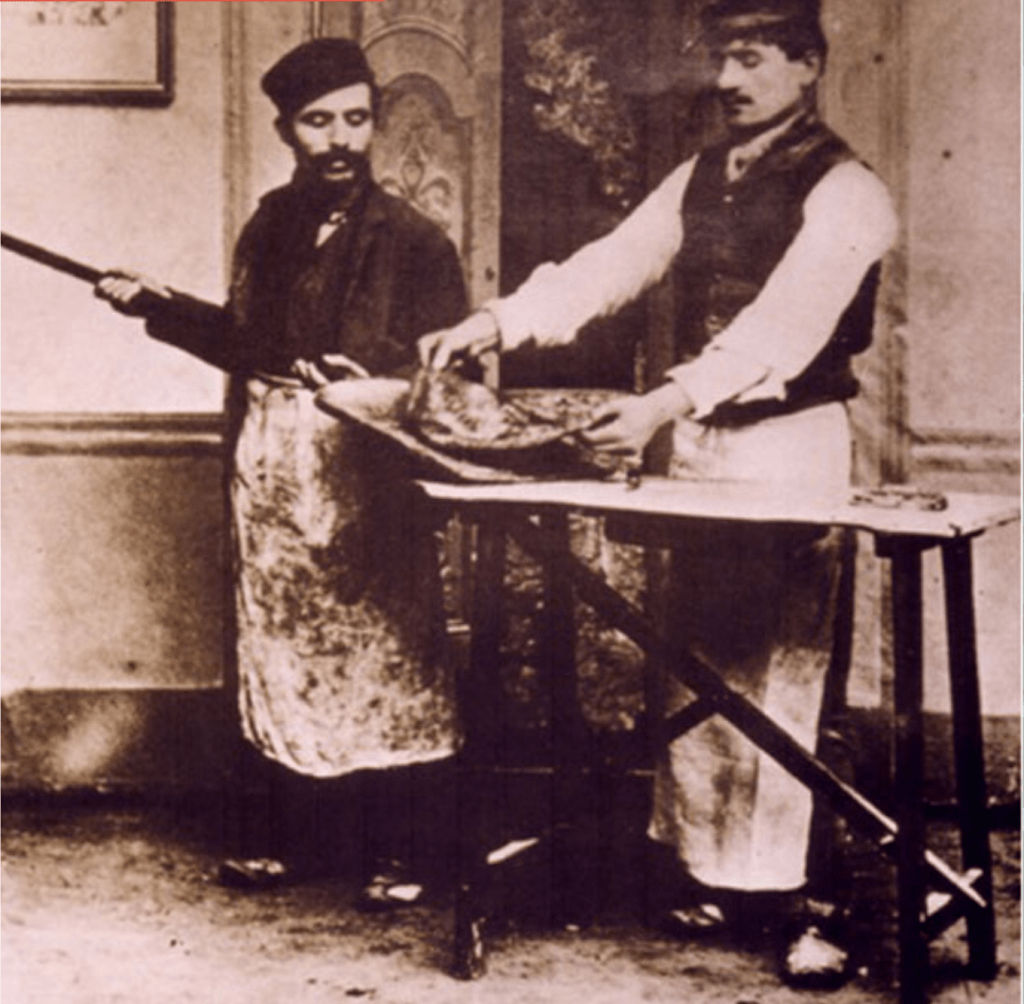 The place of pizza as a cultural monument was in other words long contested, and up for debate. Francesco de Bourcard did not praise pizza was as a democratic food of sailors who preferred marinara, but a sense of deep democracy comes through in his discussion of the pizzaiuolo who serves this peasant bread as the needed snack for working Neapolitans, even if he hawked his wares with few gestures. Is the pizza man who hawks several varieties of pizza a figure of modernity avant la lettre? De Bourcard’s pizza-man is wistfully rooted in place with no ken of coming global appeal: a ruddy pizzaiuolo hawks wares on the side of the street, almost a tragic figure offering slices of pizza and calzone by a gas lamp, well-insulated in a cappotto, not surrounded by crowds. Behind his wooden table from which he sold pizza, his apparent melancholy stands in sharp contrast and is unlike the remaking of pizza as a global commodity, at the intersection of food markets and space, driven by the comfort food or the pleasures offered by a marginal trade. De Boucard elevated the cultural figure of the pizza maker on Neapolitan streets, as part of the local social fabric of Naples, in a book on “customs” of Naples and Neapolitans echoing Vico in its insistence on telling the history of the usi e costumi. Perhaps the theatricality of the pizza-maker who spins, throws, and tosses dough was so concealed in its gestures that they hardly bore revealing as a social type.