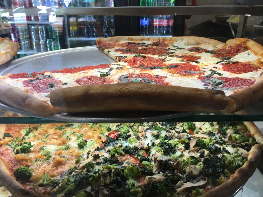 The distance of these appetizing pies marketed in the pizza chains and stores that dot New York streets are not only different from the pies made in Italy (or born in Naples), but a food that celebrate the upscale indulgence pizza continues to provide as a gigantic confection of pleasurable indulgence, even with the illusion of healthy vegetables.