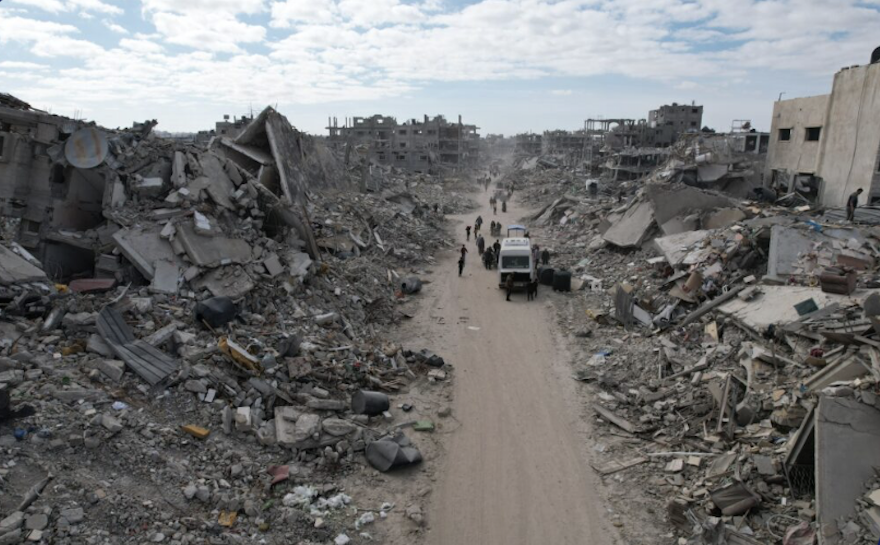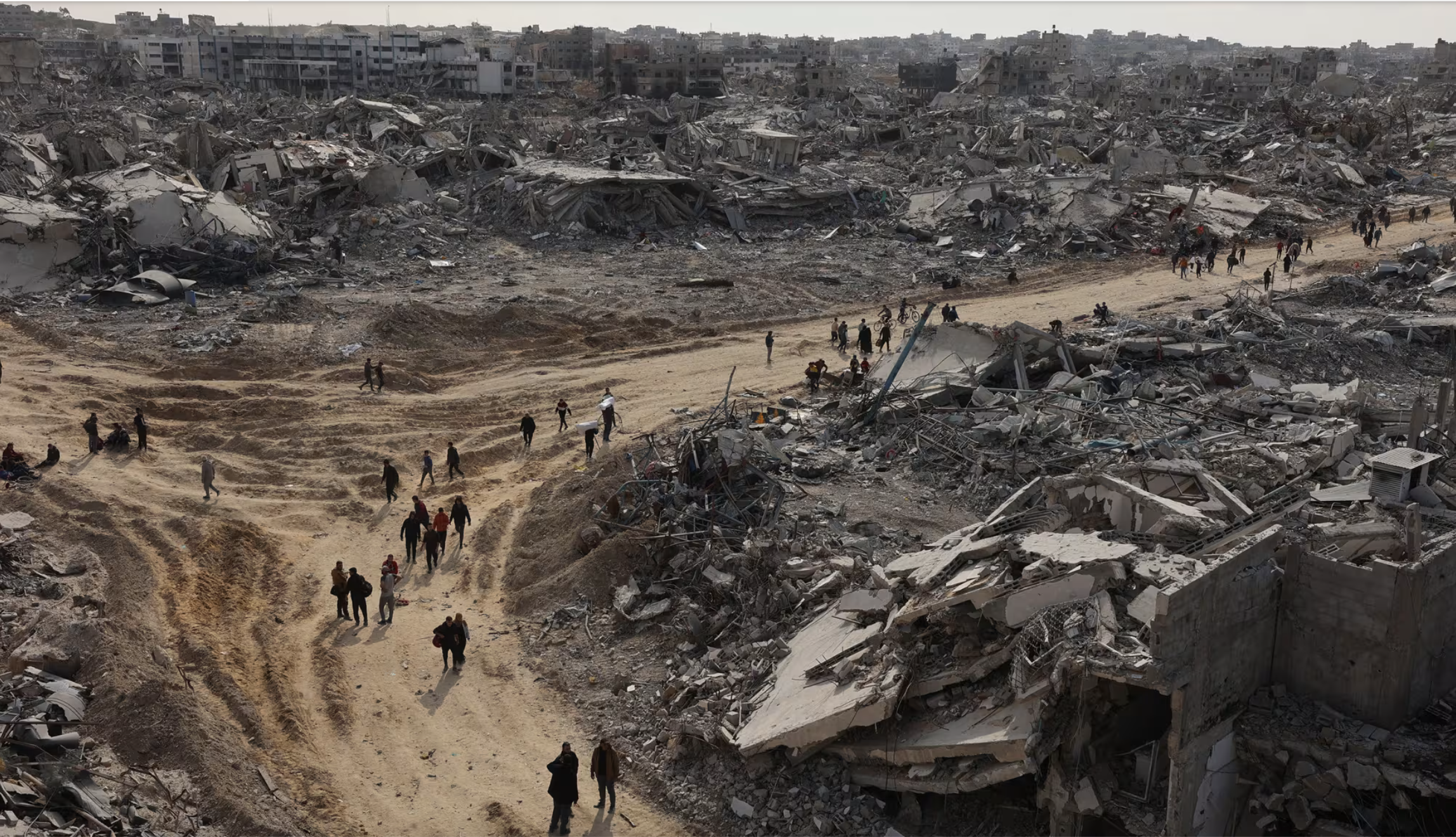 Those displaced by the Gaza War would be resolved by sending more stateless able to gain Jordanian citizenship and be welcomed into Egyptian universities, despite destabilizing of forcing stateless to enter either nation from Gaza or the West Bank, and the utter disinterest it reveals of the Miiddle East’s instability, and dismissal of a future two-state solution as “a reward for terrorism.” With all funding for reconstruction in the Gaza Strip suddenly placed in jeopardy, and taken off the table, the war continues a year after the majority of building in the region had been destroyed–and all monuments, landmarks, and many orienting signs have been destroyed, creating a true sense of immediate local disorientation, with neighborhoods flattened beyond recognition.