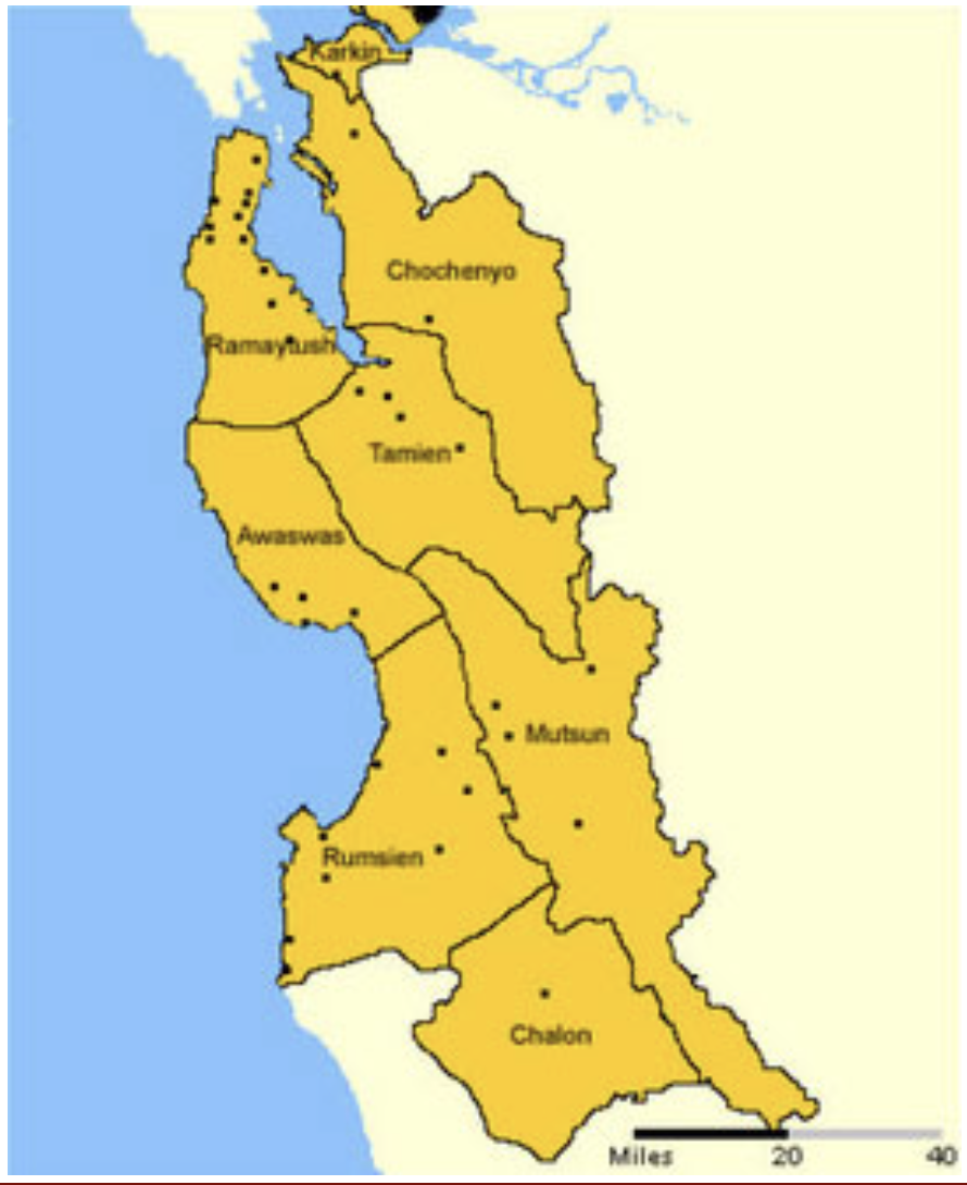 Bay Area Indigenous Language Groups and Coastal Settlements/Levy (1970), amending Kroeber, 1925