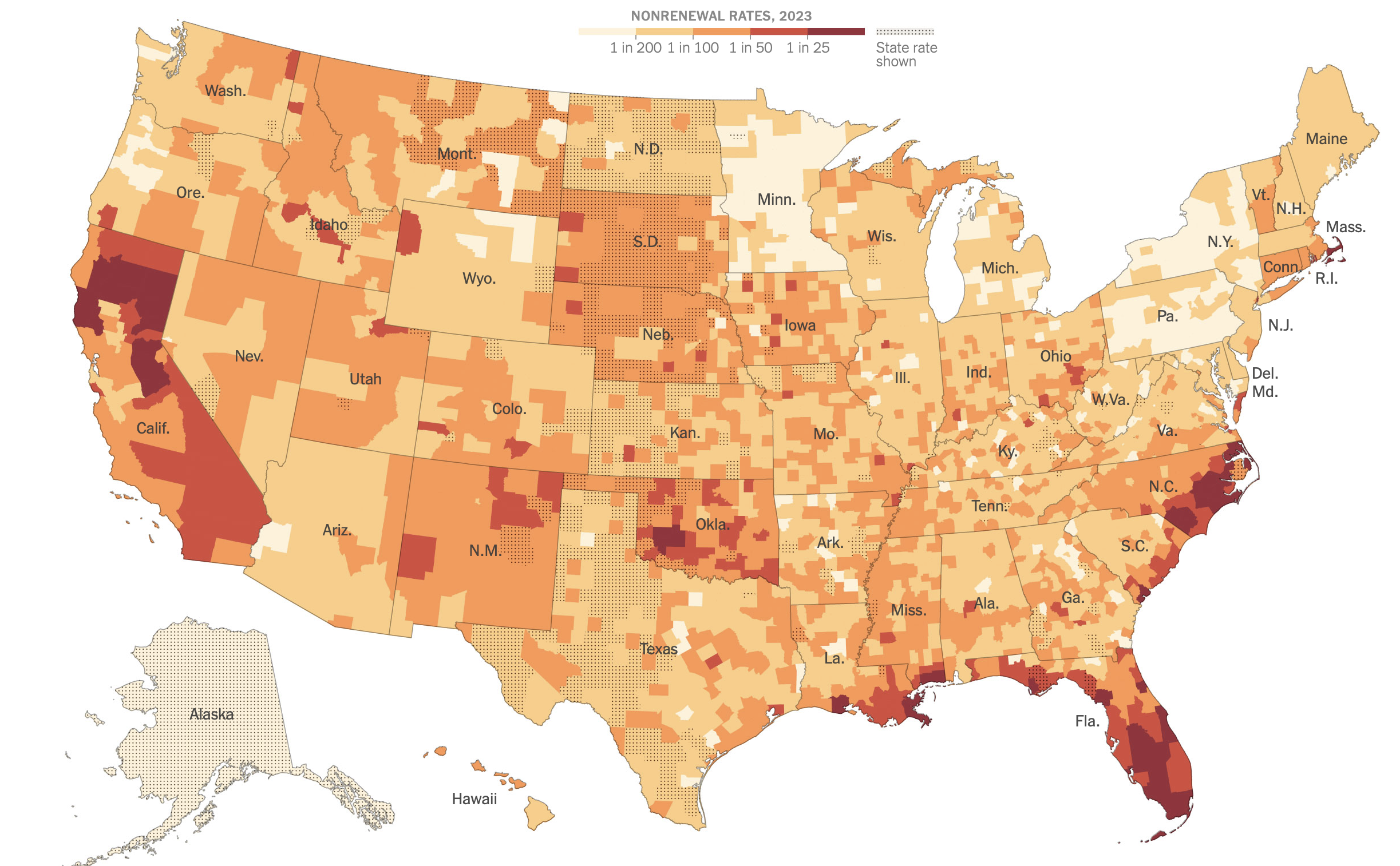 Distribution of Dopping of 1.9 Million Home Insurance Contracts, 2018-2024/New York Times (December, 2024)