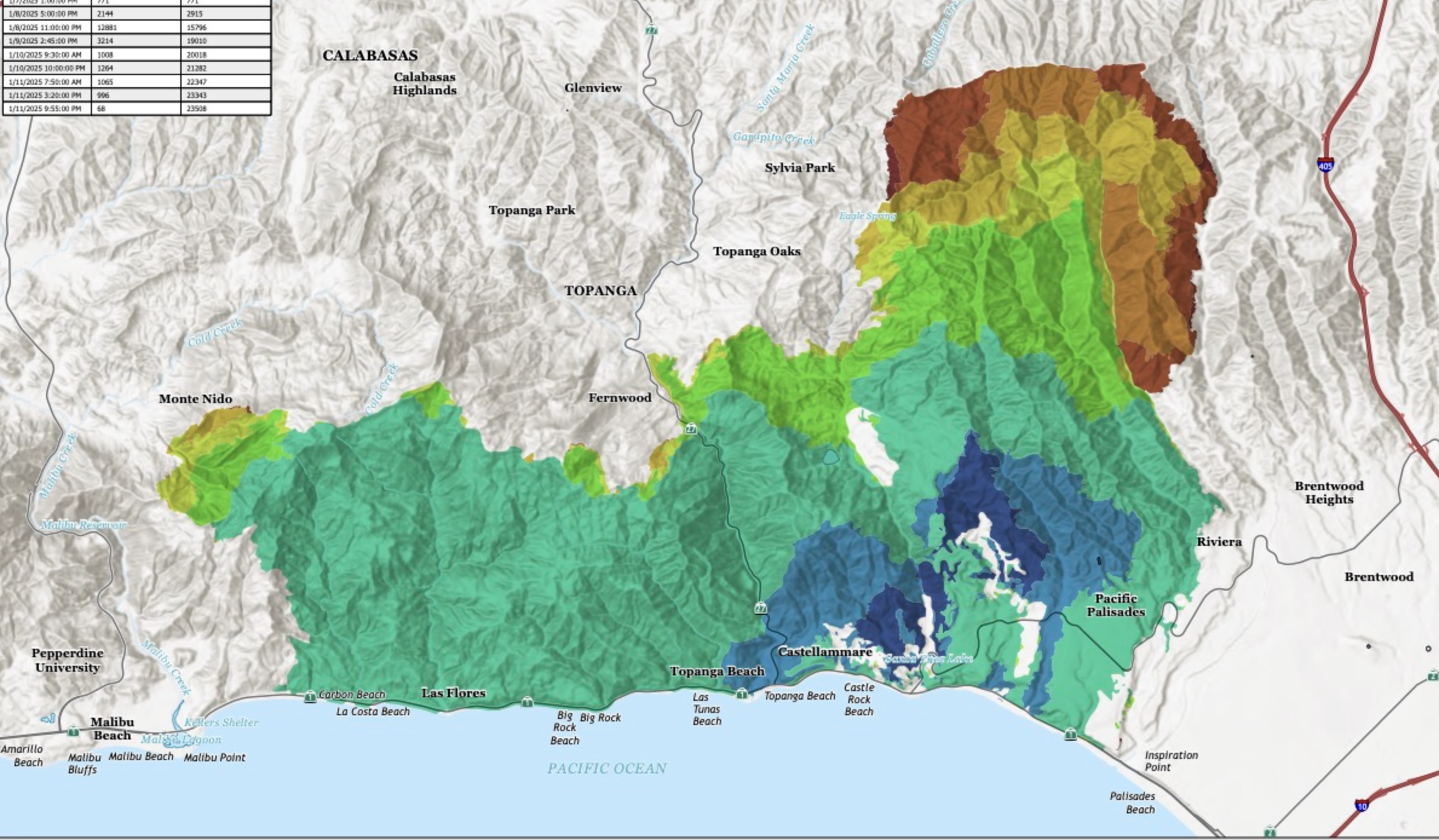 Fire Progression in Palisades Incident/January 7-January 11, 2025 (The Lookout)