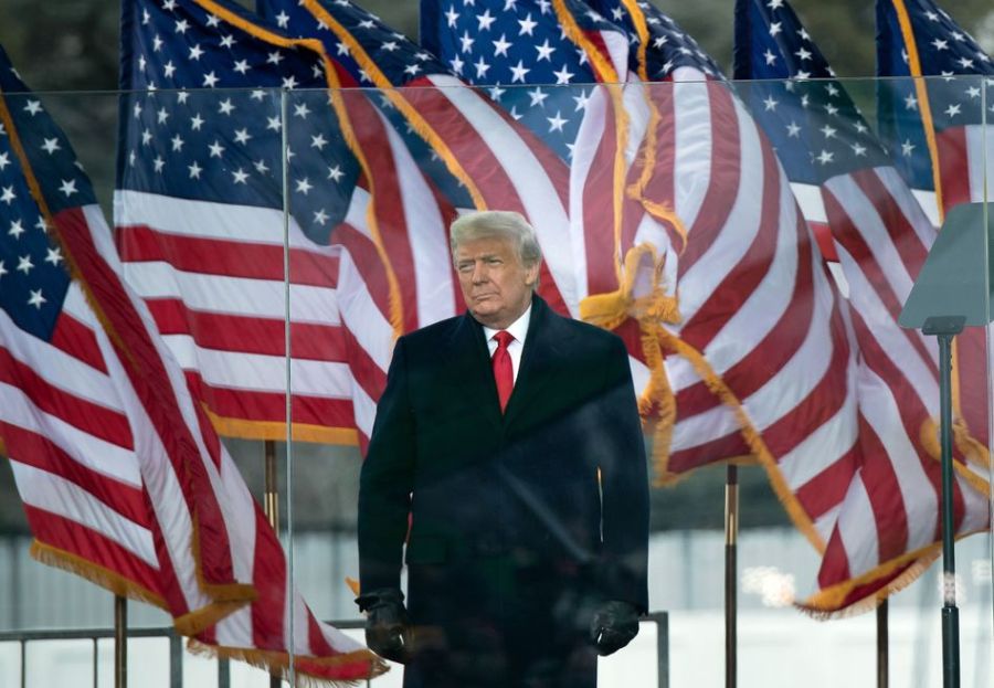 US President Donald Trump arrives to speak to supporters from The Ellipse near the White House on January 6, 2021, in Washington, DC. – Thousands of Trump supporters, fueled by his spurious claims of voter fraud, are flooding the nation’s capital protesting the expected certification of Joe Biden’s White House victory by the US Congress. (Photo by Brendan Smialowski / AFP) (Photo by BRENDAN SMIALOWSKI/AFP via Getty Images)